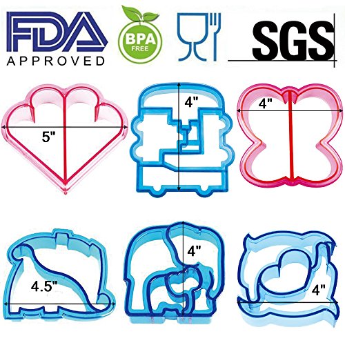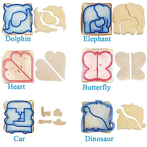 6 Fun Sandwich Cutter Shapes Widely Use: Butterfly,elephants,dolphins,heart,dinosaur,cars,which are consist of cute animal cutter shapes.It is a great way for kids to encourage them to be involved in food.Such as lunch boxes,bento boxes.It is also great for sandwiches,cookie dough,rice mold,soft fruits,bread,jelly cheese,craft clay.