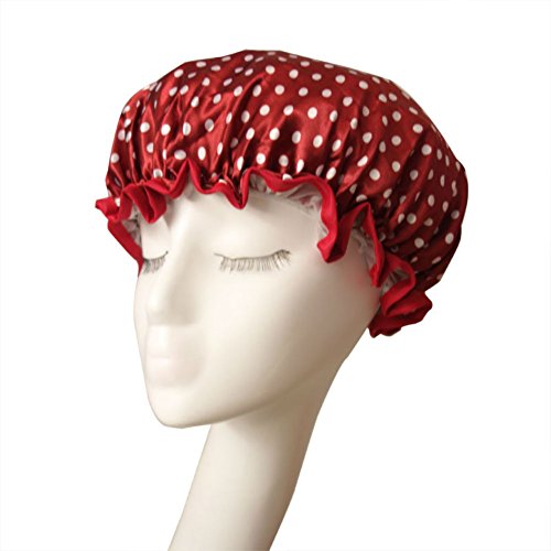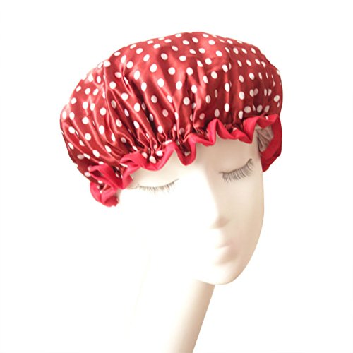 Holds all your hair in and doesn't leak at all -The elastic double layer of around the edge and and the large roomy top could make your long curly hair in.