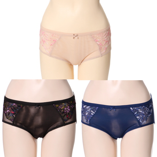 팬티 앞 판에는 유럽 감성이 느껴지는 화려한 플라워 자수로 포인트를 주고 팬티 뒷 판에는