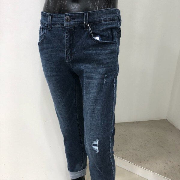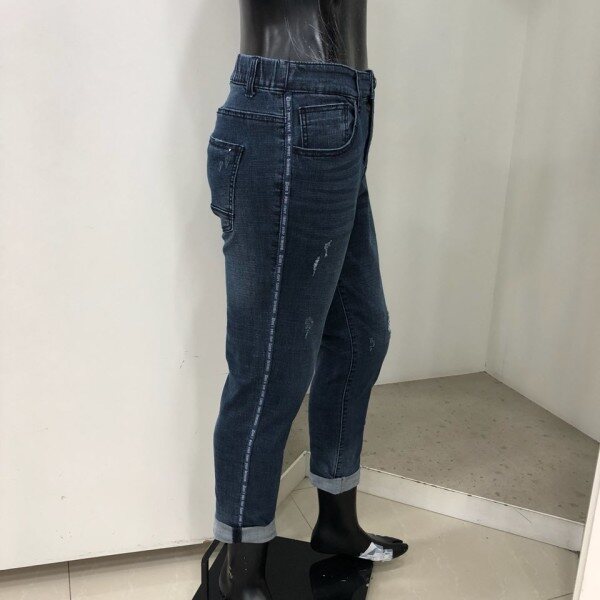 여유있게 떨어지는 크롭 기장의 핏입니다. 기본젓으로 활동성이 있으면서 트렌디한 데님을 찾는 고객님께 권장해드리며 본인의 스타일에 따라 여러가지 방법으로 롤업하여 개성있는 연출이 가능한 제품입니다. 경슬럽 스판데님 소재로 D톤과 M톤의 중간 톤으로 옆선에 테이핑 디테일을 넣어 스포티한 느낌을 가미한 디자인 입니다.