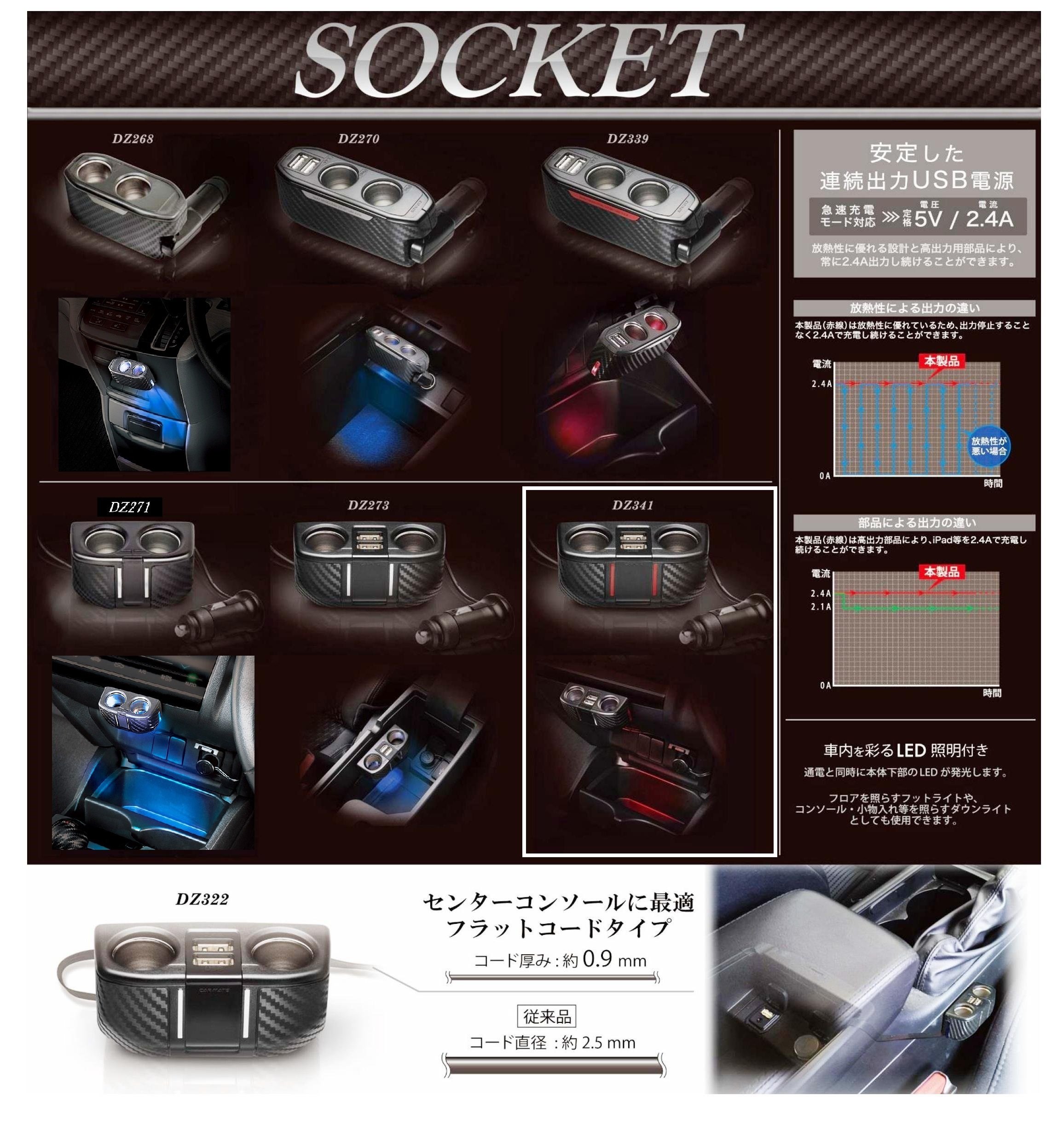 Carmate (CARMATE) 2-neck with socket 2 consecutive code USB 2.4A carbon style Red DZ341