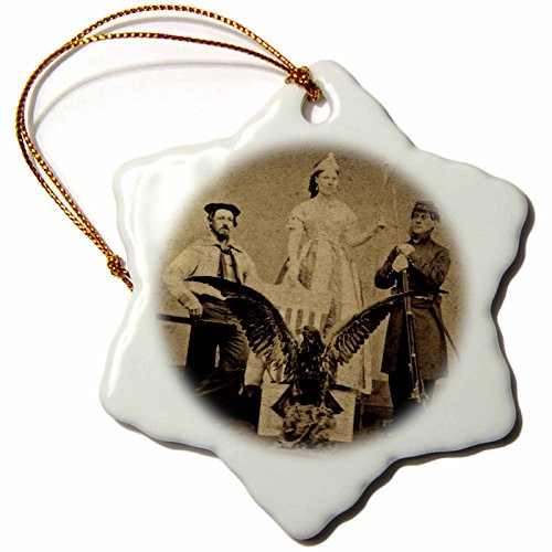 Scenes from the Past American Civil War Union Soldier and Sailor and Lady Liberty Antiqued Tone Snowflake Porcelain Ornament, 3-Inch