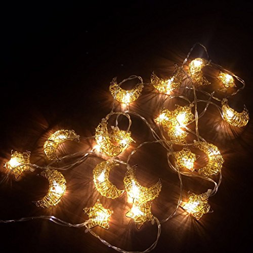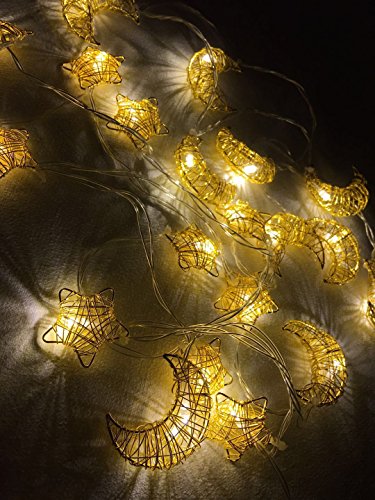 EurekaElements Handmade Metal Stars and Moon LED String Lights, [BATTERY OPERATED] (moon and stars)