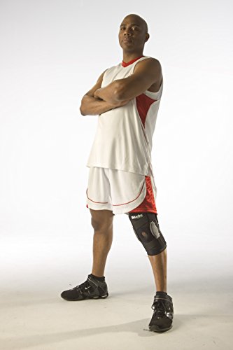 -. Feature : Mueller Green Adjustable Hinged Knee Brace is ideal for active individuals during sports and other physical activities / Criss-crossing elastic straps above and below your knee provide self-adjusting knee support / Mueller Green products are created from material made without the use of petroleum. The green inner lining is manufactured with 67% recycled plastic PET bottles. The spandex binding is made from 73% recycled materials. Even the packaging is P.R.Inted with so-base inks and 100% recyclable. / Antimicrobial treatment controls or eliminates odors / ONE SIZE FITS MOST: Measure around the knee, 13" - 21". Fits either knee