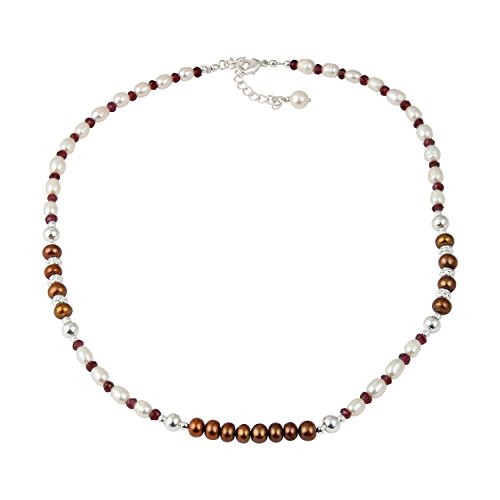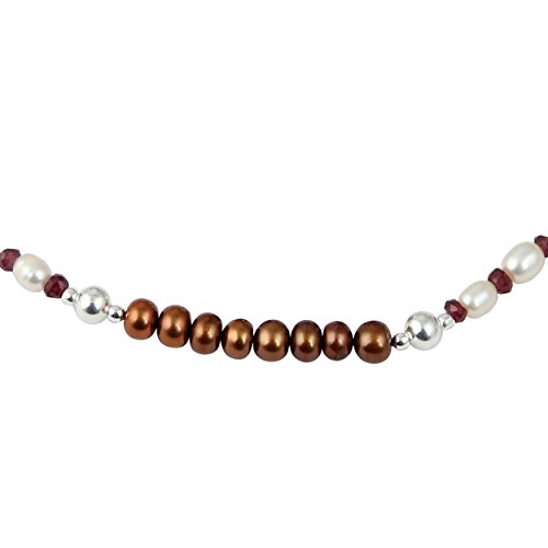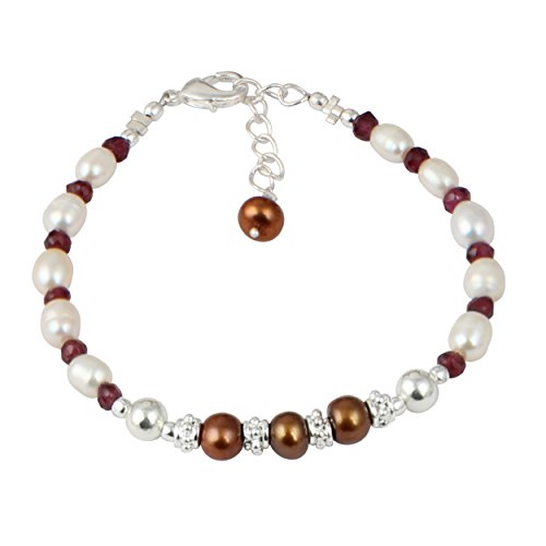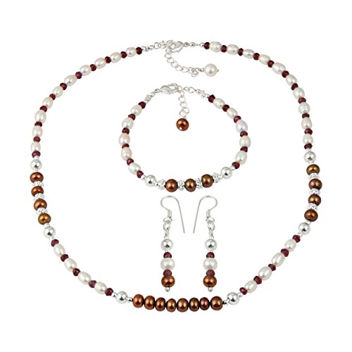 This mesmerizing necklace set is hand-crafted in US by Pearlz Ocean. This pearl necklace set will make a wonderful gift for a special someone. The set includes a stunning pearl necklace, bracelet and dangle earrings. The rhodolite garnet faceted, dyed chocolate freshwater pearls are with a gentle luster that reflects light discreetly. The length of the necklace in this is 18 inches and it has an extension of 2 inches and it secured with lobster claw clasp. The length of the bracelet is 7 inches and it has 1 inch and the earrings are 2 inches long. These necklace set will complement the wearer's elegant and glamorous look.Its a best Jewelry Gift collection for your loved one's on all events of Birthday, Valentine, Thanksgiving, Christmas, mother day and many more.Feature