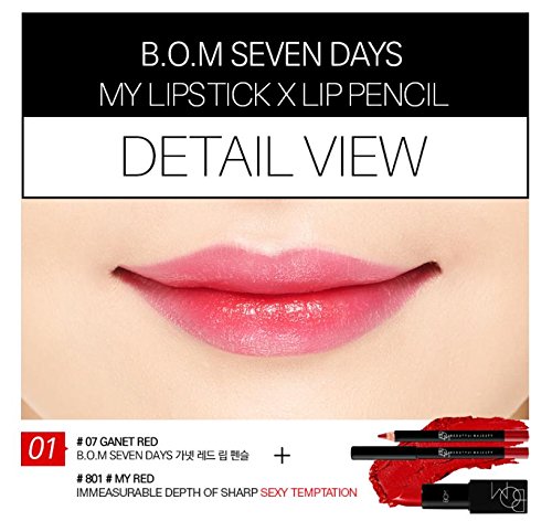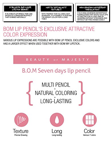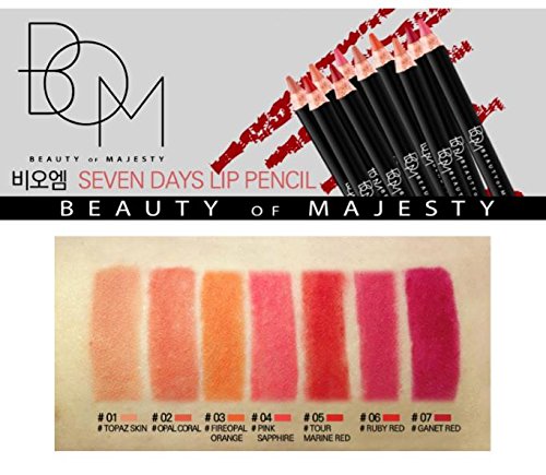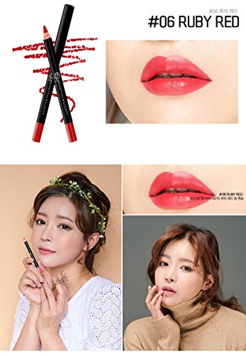 [BOM] Seven Days Lip Pencil 1.5g, Matt & Soft Velvety Texture, 7 colors, long-lasting, Waterproof (06 RUBY RED)