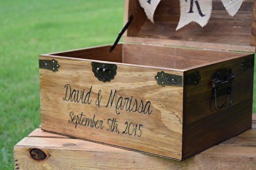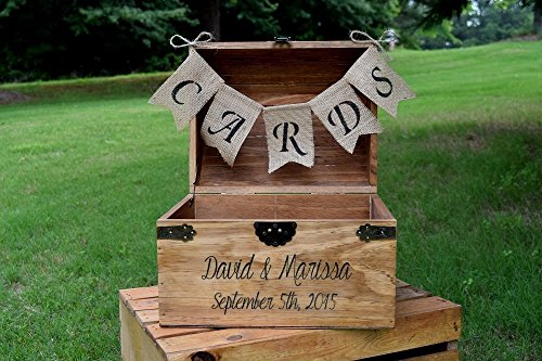 -. Title : Personalized Wedding Card Box with Engraved Name and Date and Burlap Cards Banner - Wedding Card Box - Rustic Wooden Card Box - Rustic Wedding Card Box - Rustic Weddings