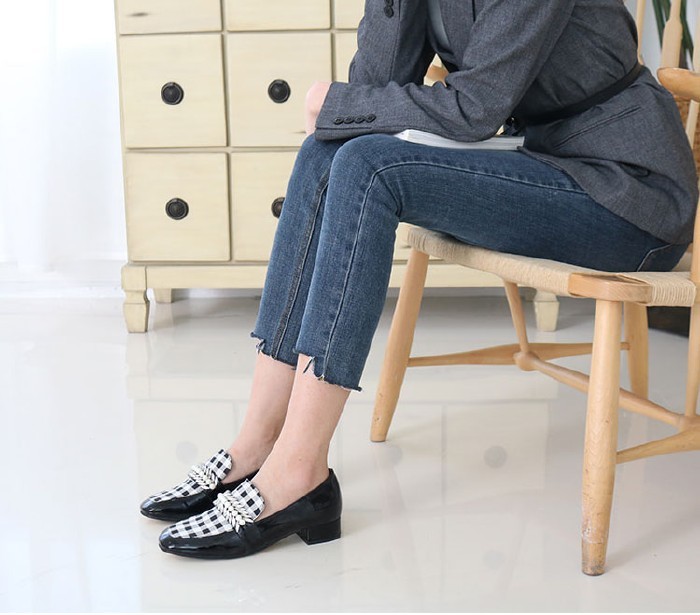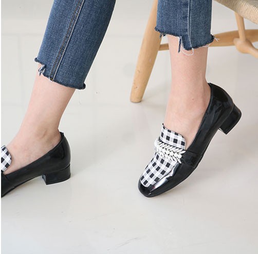 商品名:ローファー レディース ローヒール チェック 2018 春 ファッション 靴 婦人靴