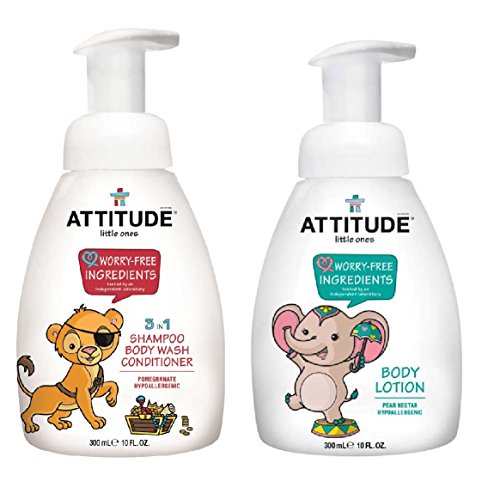 Attitude 3-in-1 Shampoo Pomegranate and Baby Body Lotion Bundle with Sodium Benzoate, Shea Butter and Soybean Oil, 10 fl. oz. each