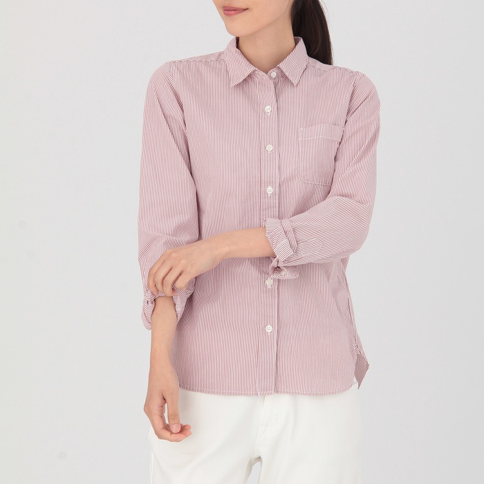 원본상품명: オガニックコットン洗いざらしストライプシャツ 婦人LネイビSALE