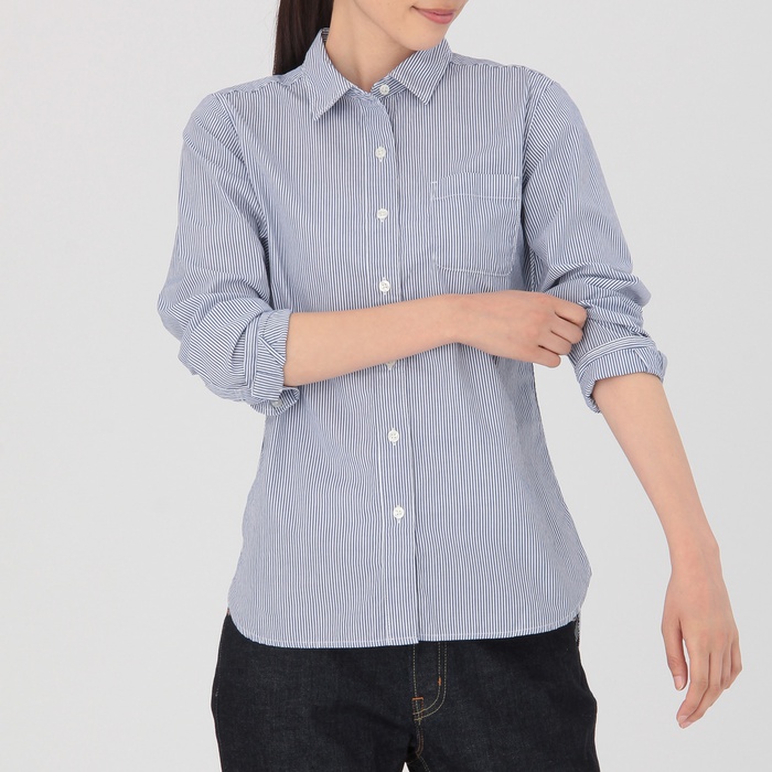 Muji 오거닉 코튼 색이 바램 스트라이프 셔츠 부인L네이비 편의점 수취가