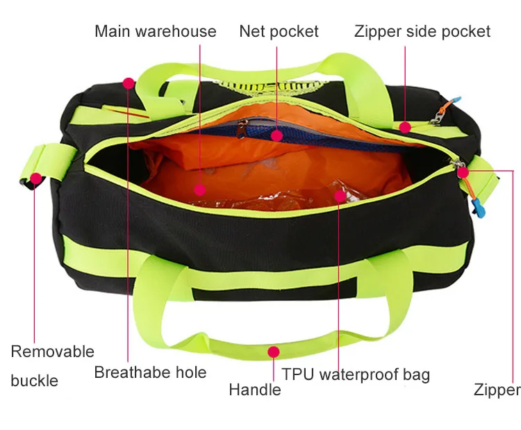 Product feature 1:Dry wet separation,TPU waterproof bag ,breathable hole,large capacity