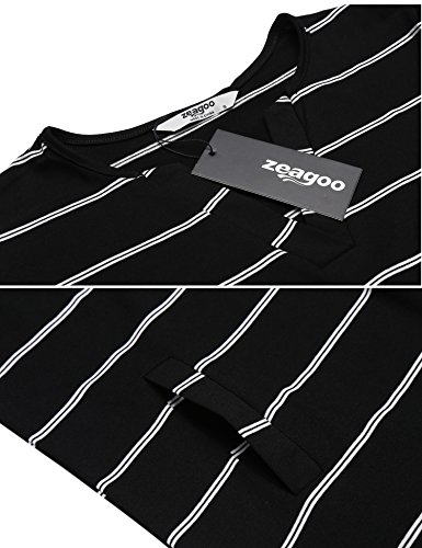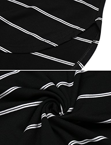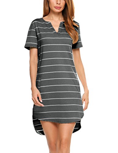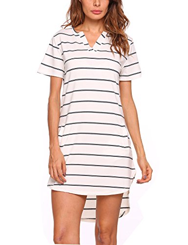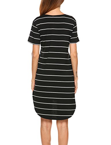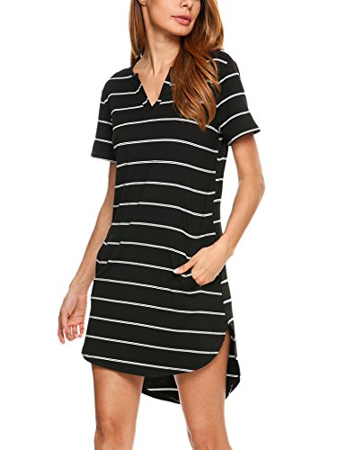 Feature: V Neck / Short sleeve / pinstriped printed / High low hem design / Casual loose dress / 2 side-entry welt pockets / Pull on closure