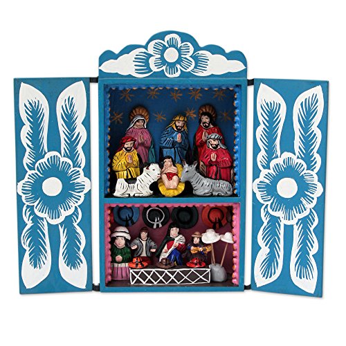 NOVICA 'Blue Andean Christmas' Wood Retablo