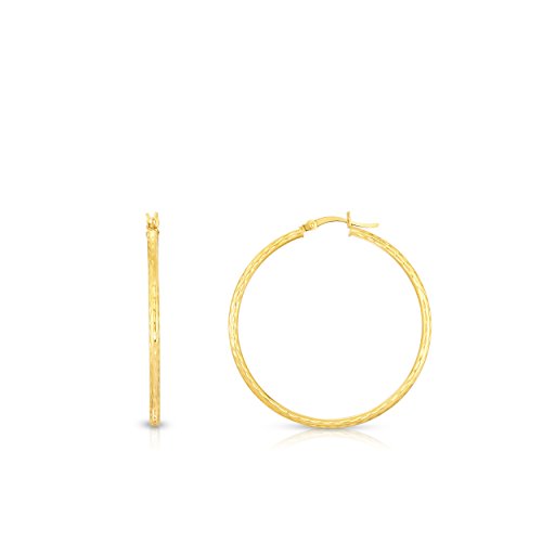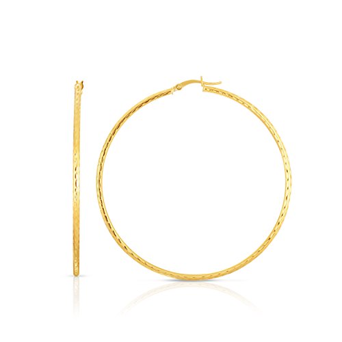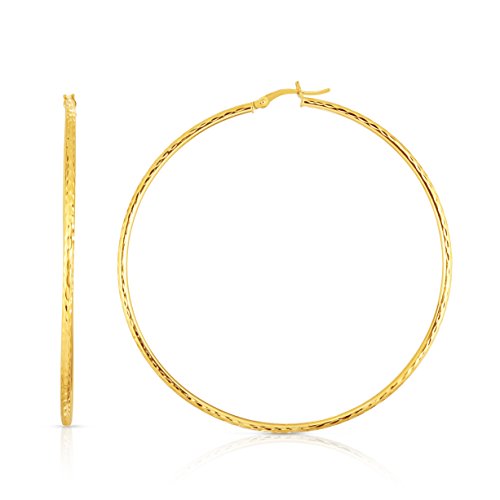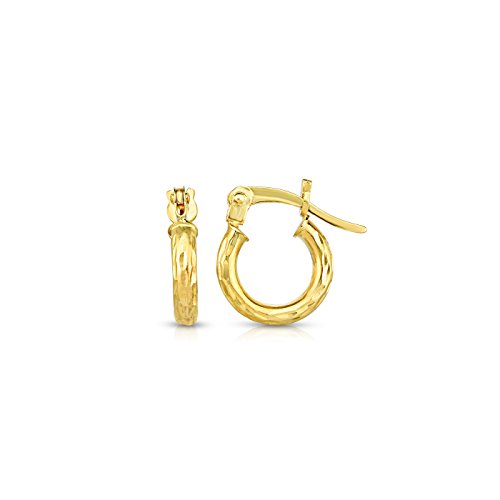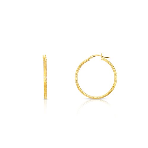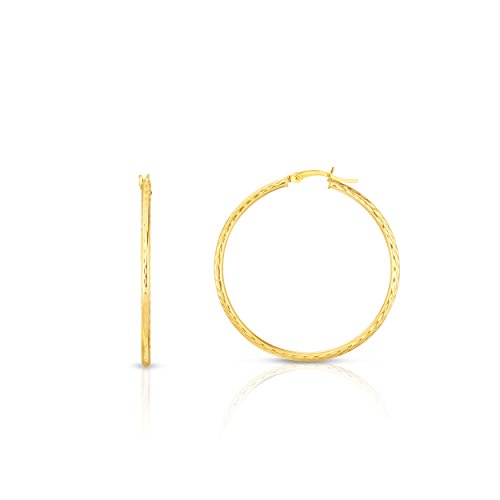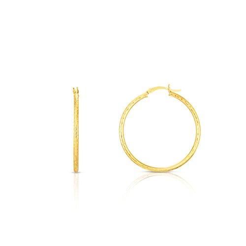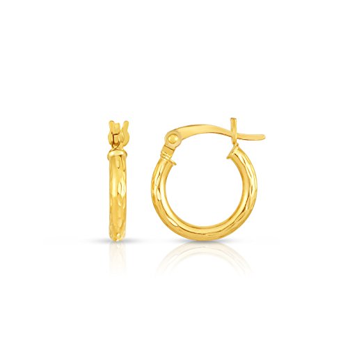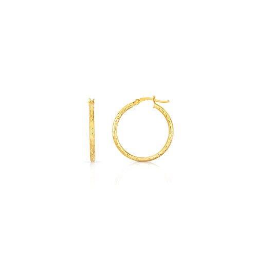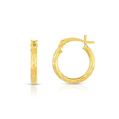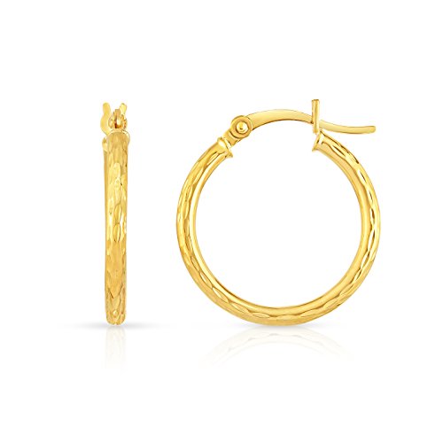 10k Fine Yellow and White Gold Diamond Cut Hoop Earrings