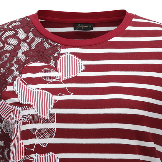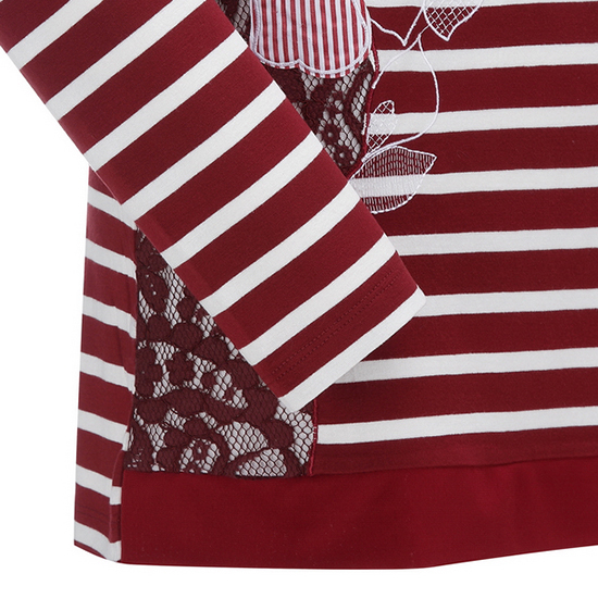 - 스트라이프 바탕에 레이스와 패치 자수 디테일로