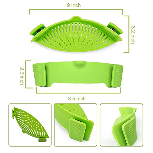 -. Feature : ★ Material: High Temperature Food Grade Silicone, safety and health, BPA free / ★ SIZE: 9 x 3.2 x 2.3 inch (LxWxH), suitable for human body structure, easy to use / ★ MULTIFUNCTION: Silicone strainer can drain excess liquid easily by clip it on your container and eliminates the transferring process. It can be used for straining fat from cooked meat, water from pasta etc / ★ STABLE STRAINING: Unique design helps free up your hands so you can use them to hold on to the handle/s of the pan for better control. No need to hold a strainer or a lid against the pot while trying to drain boiling hot excess liquid / ★ SATISFACTION GUARANTEED: HULISEN will make sure that you will be satisfied with this set you buy from us. We are protected with your 100% No Questions, Guarantee for either a replacement or refund. We care about only putting out high quality products that satisfy your needs