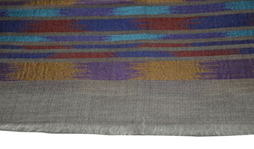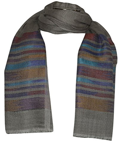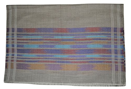 Binding : Apparel Product Description ITEM DESCRIPTION Handcrafted by artisans from Kashmir with Premium Quality Pashmina Wool fabric. This Scarf/Shawl is luxurious, super soft, warm, in beautiful Diamond Jacquard Multiolor Ikat Weave, Very light weight and apt for any occasion. Never out of fashion. Dimensions: 78 Inches * 29 inches (Approximate) Maintenance: Dry Clean only. 0