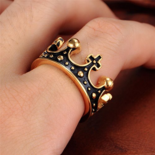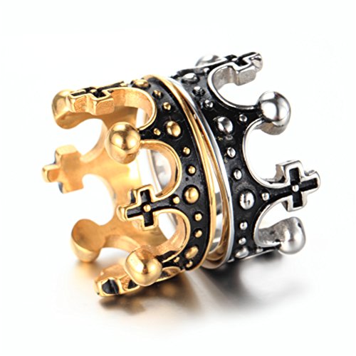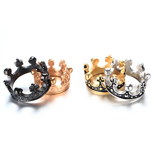 -. Title : OAKKY Men's Vintage Royal King Crown Ring Stainless Steel Black Silver Gold Cross Band 4 Colors