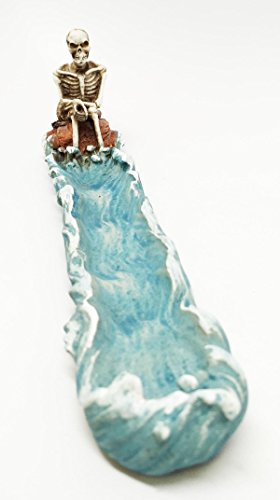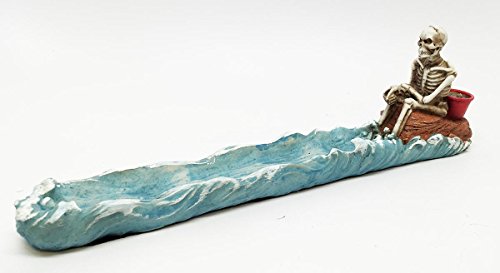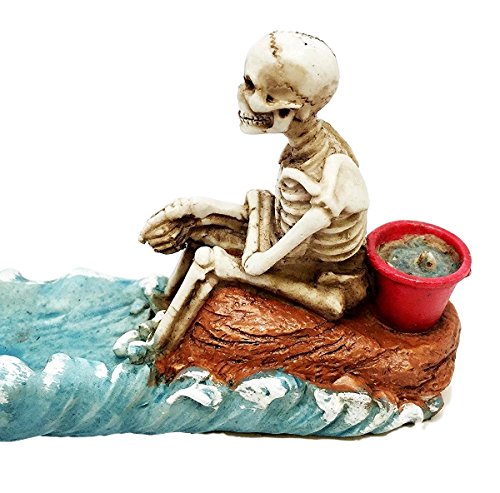 Cast Away Skeleton Stranded On Island Fishing For Fish Incense Burner Figurine