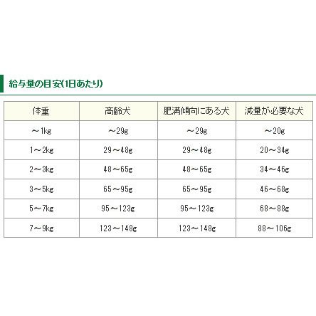 素材構成:粗タンパク質 22%以上、粗脂肪 12%以上、粗繊維 3.0%以下、水分 10%以下、ビタミンE 300IU/kg以上、ビオチン 0.25mg/kg以上、オメガ6脂肪酸 2.0%以上、オメガ3脂肪酸 0.3%以上、グルコサミン 1200mg/kg以上、コンドロイチン 400mg/kg以上、代謝カロリー ME3435kcal/1kg