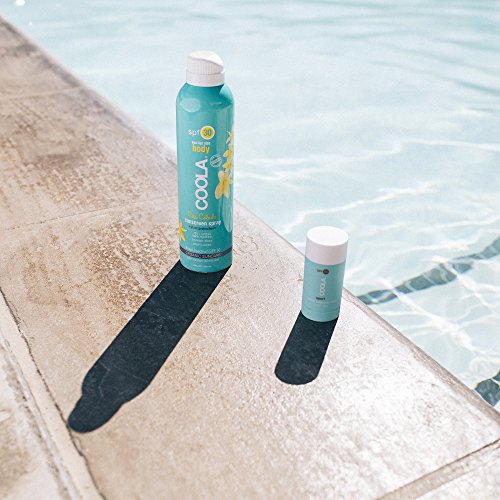 Spritz your sunscreen on the go with this clear, continuous spray in all natural pina colada. Offering broad spectrum SPF 35 protection, this spray will also nourish, repair and hydrate skin with 97% certified organic inactive ingredients like aloe, cucumber, algae and strawberry extracts and red raspberry seed oil, a natural sunscreen and anti-inflammatory rich in omega-3 and 6. Have your fun in the sun and then some with coola.Feature