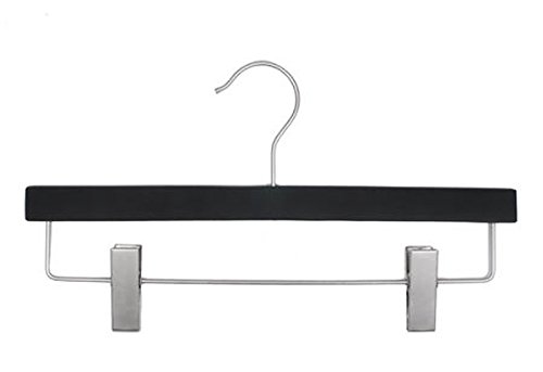 -. Feature : 14" pinch clip hanger for pants, skirts, and other garment bottom pieces / Wood with rubberized black coating for strength and durability / Metal hook, clips, and clip bar with brushed chrome finish for resistance to corrosion / Adjustable pinch clips for holding garments of varying widths / 3/8" thick with imP.R.Intable 7/8" face