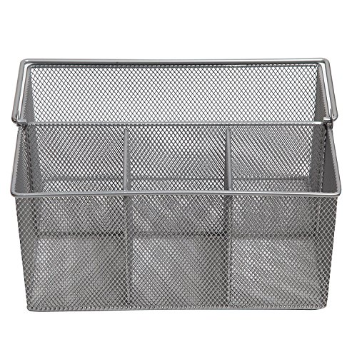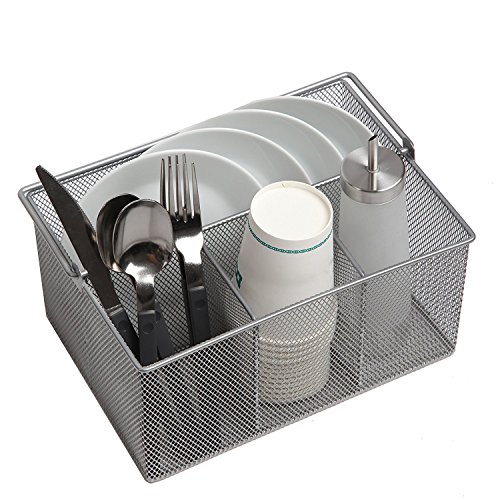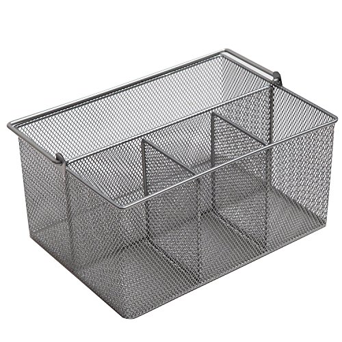 Finnhomy Utensil Mesh Caddy for Silverware, Napkin and Condiment Organizer Ideal Multi-Functional Steel Mesh Caddy for Kitchen, Dining, Picnics, Camper, Entertaining, and More, Sliver