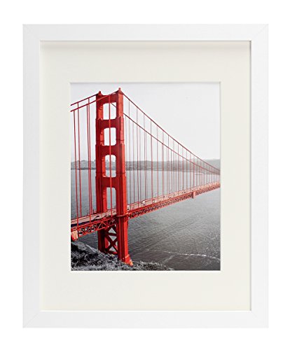 Modern Design: 11x14 White Picture Frame for 8x10 Golden Gate Bridge In San Francisco As The Famous Landmark Wall Art Decor Giclee Photo Print With an Ivory Color Mat