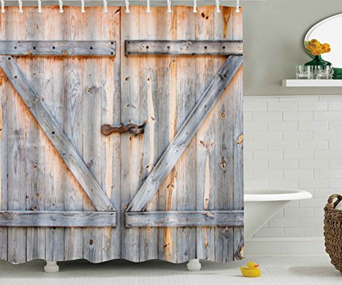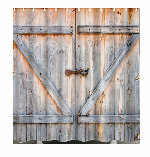WINGONEER Home Bathroom Waterproof Mildew Polyester 59 x 70 Inch Shower Curtain With Hooks - Rustic Barn Door