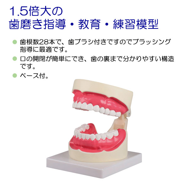 ●歯根数28本で、歯ブラシ付きですのでブラッシング指導に最適です。