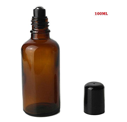 2PCS 100ML Upscale Empty Refillable Amber Glass Roll on Bottles Essential Oil Perfume Roller Bottles with Stainless Steel Roller Ball and Black Cap Attar Bottle