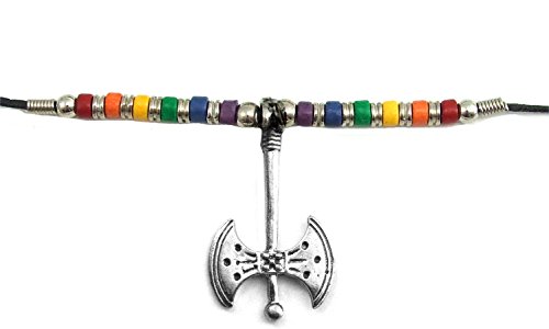 Product DescriptionRainbow cermamic beads large labrys necklace0