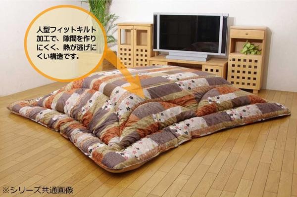 和柄のこたつ布団です。熱が逃げにくいフィットキルト加工を施しています。