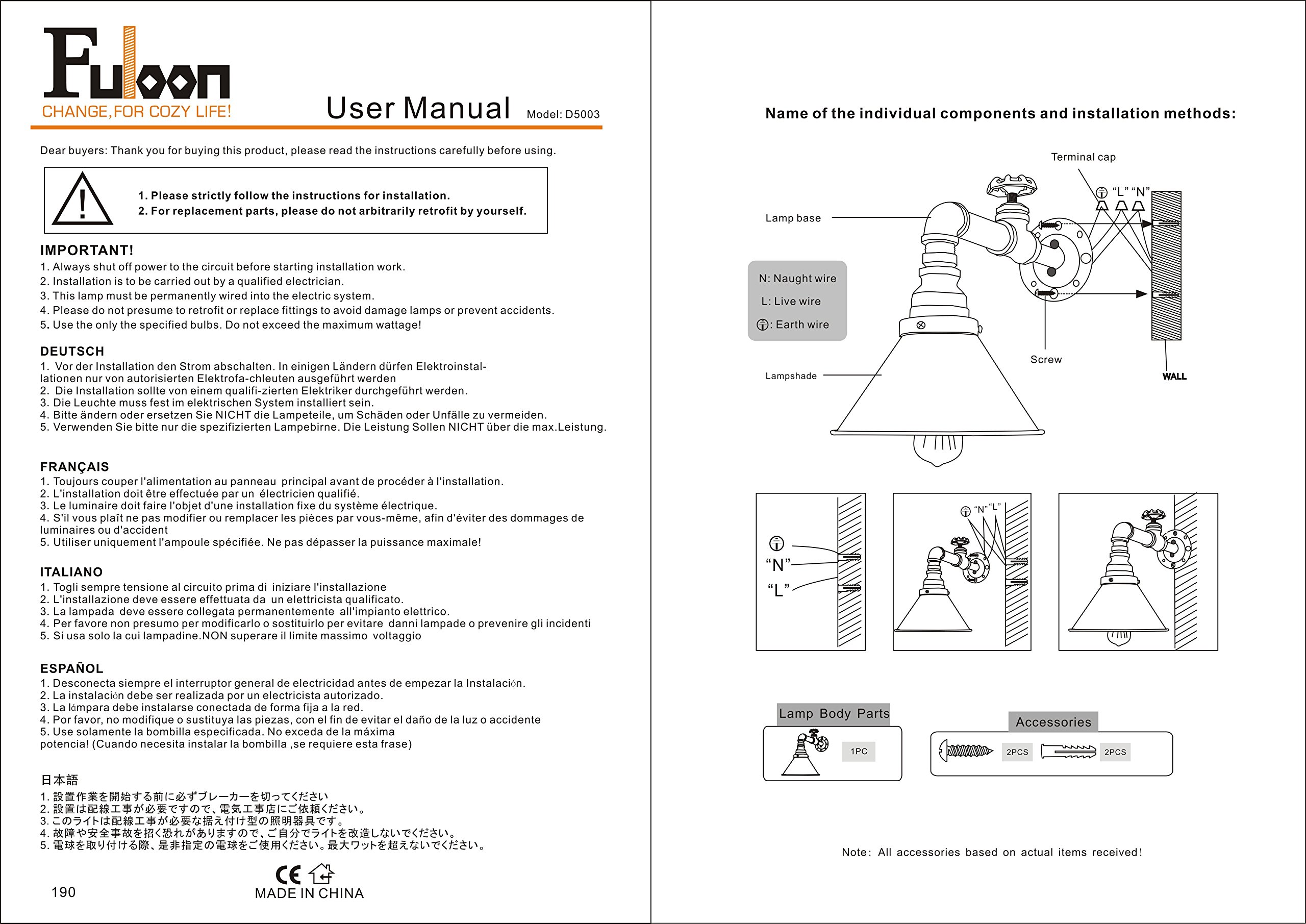 ● The bulb used is E 27, the light bulb is sold separately.