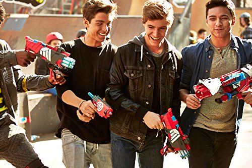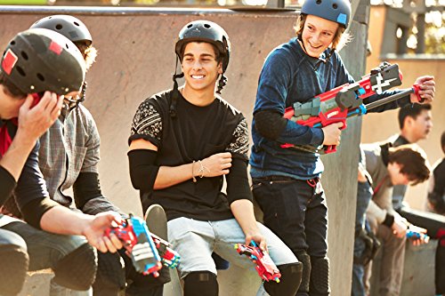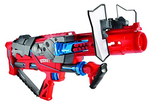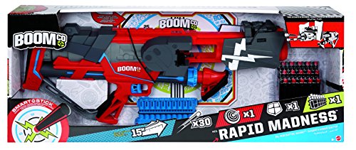 The BOOMco. Rapid Madness Blaster features the BOOMco. awesome Smart Stick system that lets you see exactly where you nailed it! The tip of every dart sticks like crazy to all Smart Stick targets and blaster shields. The Rapid Madness Blaster offers ultimate firepower on the battlefield, with two ways to blast: single-shot for accuracy or 20 darts in seconds, firing up to 50 feet. It also features push-button removable transforming shields with Smart Stick technology, so you can capture your opponent's darts and use them yourself!Feature