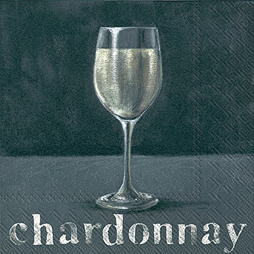 - Design features glass of white wine and reads chardonnay on blue gray background