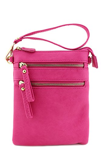 Multi Zipper Pocket Small Crossbody Bag - Total 3 zipper pockets at outside and 1 zipper pocket inside. It can be used as a wristlet purse or as a crossbody bag.