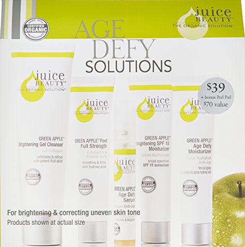-. Binding : Health and Beauty -. Brand : Juice Beauty -. Department : 24 Sets -. EAN : 0834893003998 -. Feature : This green apple based set helps to stop aging in its tracks.A $75 Value -. IsAdultProduct : 0 -. Label : Juice Beauty -. LegalDisclaimer : This product can only be shipped to : United States -. Manufacturer : Juice Beauty -. MPN : AAJ-049 -. NumberOfItems : 1 -. PackageQuantity : 1 -. PartNumber : AAJ-049 -. ProductGroup : Prestige Beauty -. ProductTypeName : LUXURY_BEAUTY -. Publisher : Juice Beauty -. ReleaseDate : 2011-05-25 -. Size : 1 ea -. Studio : Juice Beauty -. Title : Juice Beauty Age Defying Solutions Kit ($60 Value) -. UPC : 834893003509