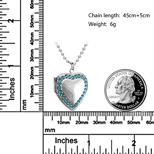 About YOUFENG Jewelry Love heart locket necklace pendant,Blue or Red or White CZ birthstone photo locket, Living memory locket,18K gold plated