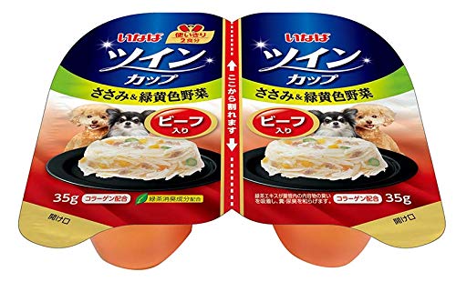 原材料:鶏肉(ささみ)、野菜(人参、かぼちゃ、いんげん)、牛肉、チキンエキス、鶏脂、酵母エキス、コラーゲンペプチド、増粘多糖類、ビタミンE、紅麹色素、緑茶エキス
