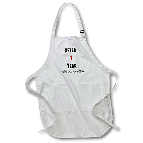 3dRose After 1 Year He Still Puts Up with Me, black and Red Letters - Full Length Apron, 22 by 30-Inch, black, with Pockets (apr_213461_4)