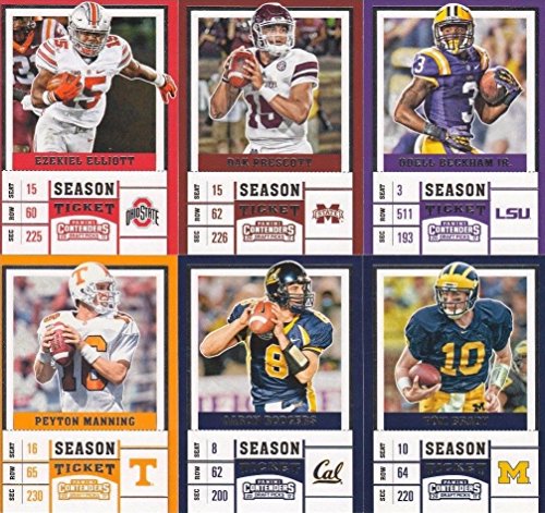 - Loaded with stars pictured in their College Uniforms including Tom Brady, Dak Prescott, Ezekiel Elliott, Russell Wilson, Andrew Luck, Peyton Manning, Barry Sanders, Bo Jackson, Carson Wentz, Brett Favre, Dan Marino, Emmitt Smith, Joe Namath, Roger Staubach, Larry Fitzgerald, Cam Newton, Joe Flacco, Aaron Rodgers, Adrian Peterson, Odell Beckham Jr., Ben Roethlisberger, Eli Manning, Drew Brees, Matt Ryan, Rob Gronkowski, Steve Young, Tim, Tebow, Dez Bryant and many others!