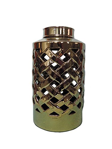- Decorative Ceramic Basket Weave Covered Jar, Gold , 8.75" X 8.75" X 15.5"