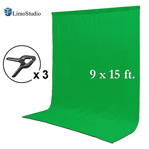 LimoStudio 9 x 15 ft. Green Chromakey Muslin Backdrop Background Screen for Photo Video Studio, 3 x Backdrop Clamp, AGG1777