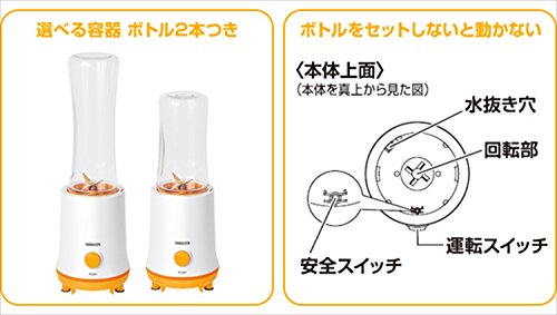 원본상품명: 山善(YAMAZEN) ボトルミキサ? ボトル2本付(大500ml小400ml) オレンジ YME-540(D)