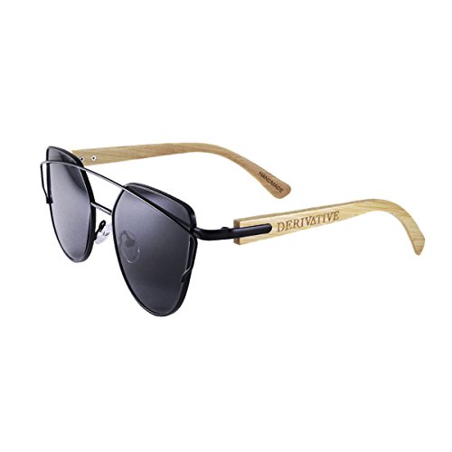 Super cute flat lens cat-eye metal frame & bamboo wood arm sunglasses for women & men. These are lightweight handmade sunglasses and with UV400 lenses for 100% UV Protection. Includes 1 Pair of Derivative cateye bamboo wooden sunglasses with flat lenses, 1 microfiber bag, & 1 bamboo wood sunglass case. These are scratch resistant, not scratch proof; please do not clean with paper towels and only use the provided micro-fiber pouch and no household soaps or detergents. Please contact us anytime for support or questions regarding orders or Derivative brand products, we are happy to help!Feature