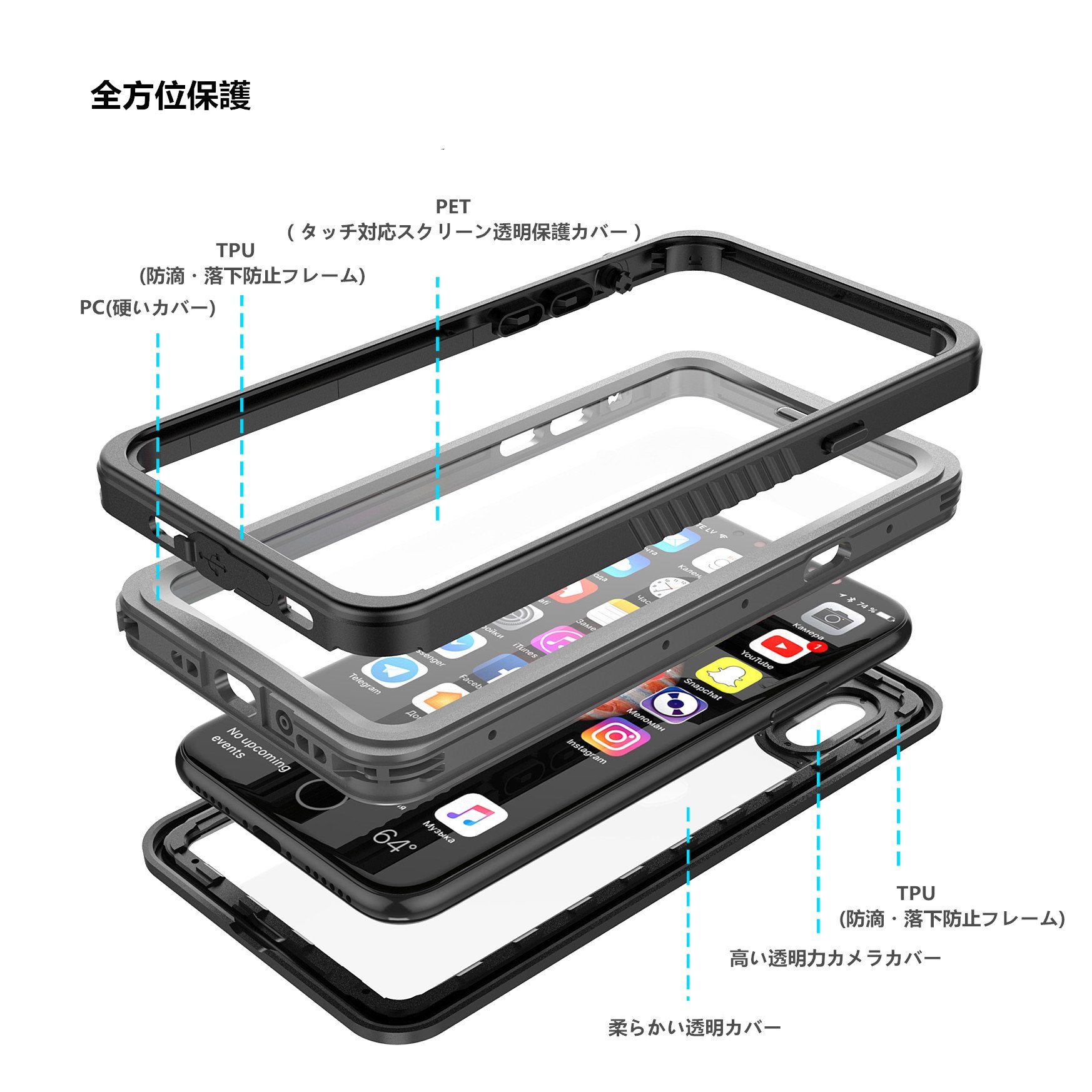 IP68 specifications are taken, using special waterproof materials, covering the entire iPhone, functions such as complete waterproof dust protection and snow protection are realized.