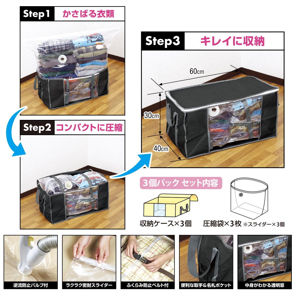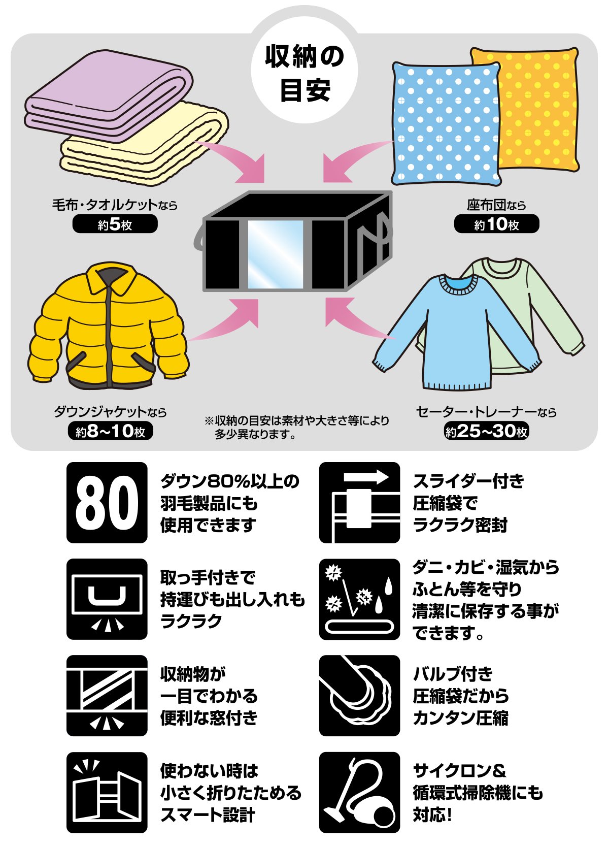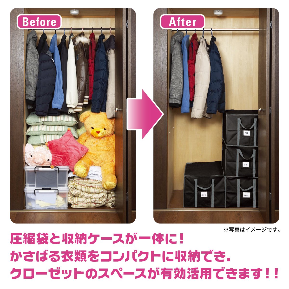 The compression bag and the storage case are united, and also the inside of the closet is cleanly stored cleanly!