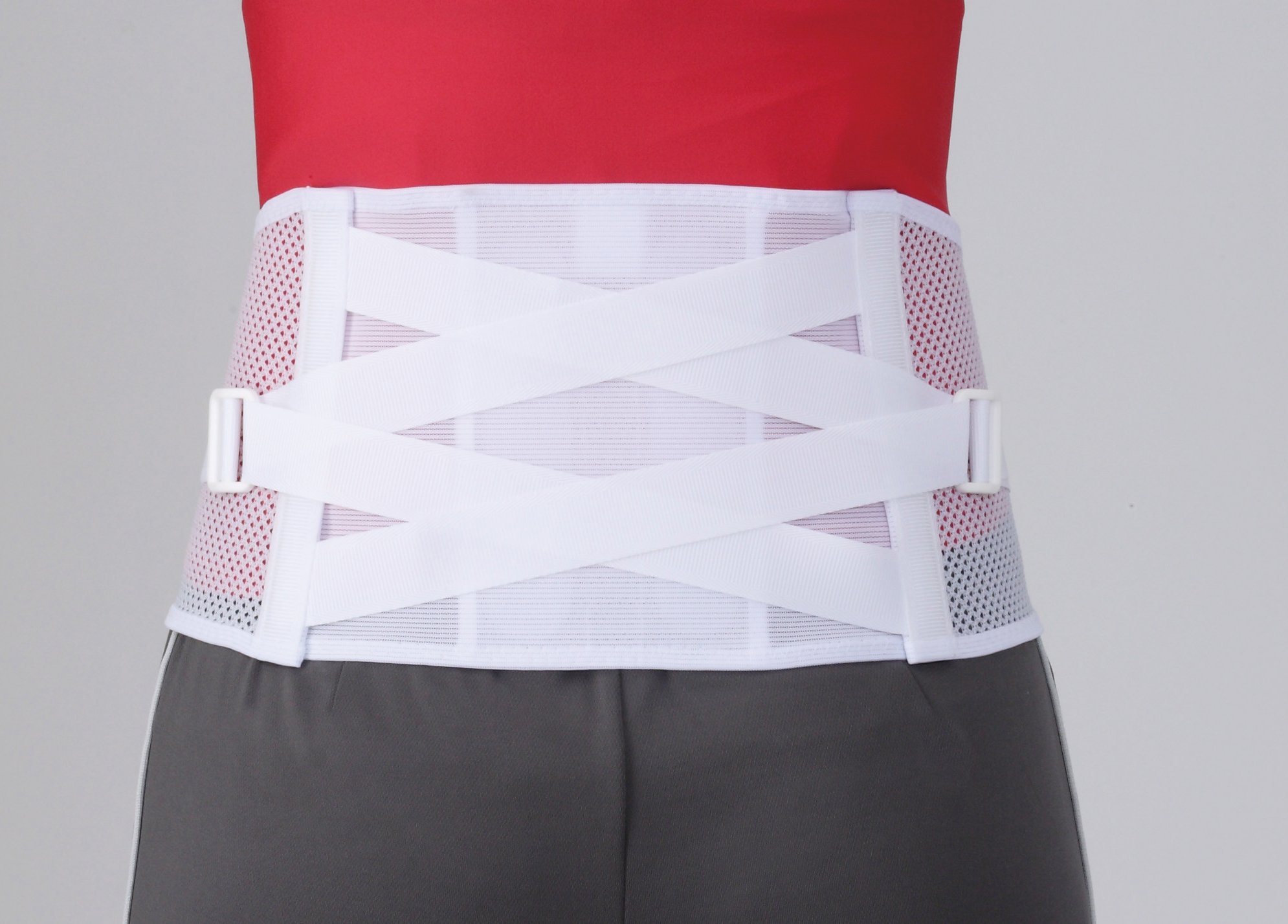 Fasten the waist firmly with X belt structure and non-elastic material.